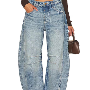 Venta al por mayor de fábrica Vintage Super Long Baggy Jeans 100% algodón Mujeres Cintura alta Jeans de pierna ancha